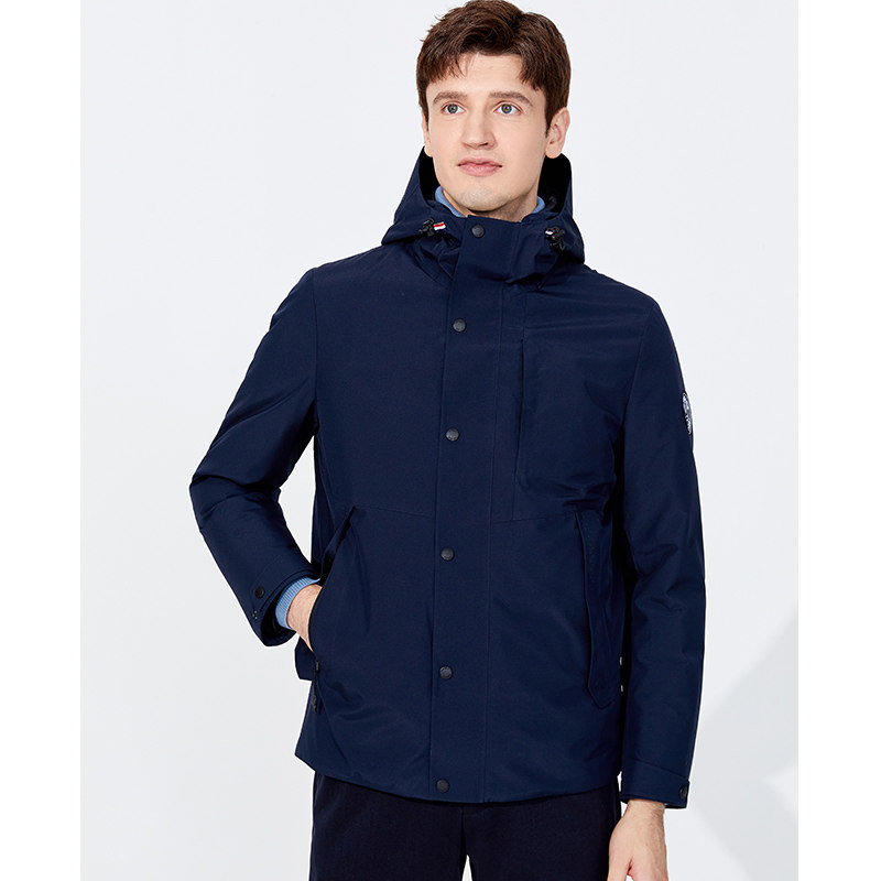 【鹅绒】波司登奥莱男经典商务连帽智能NFC贴羽绒服舒适短款连帽