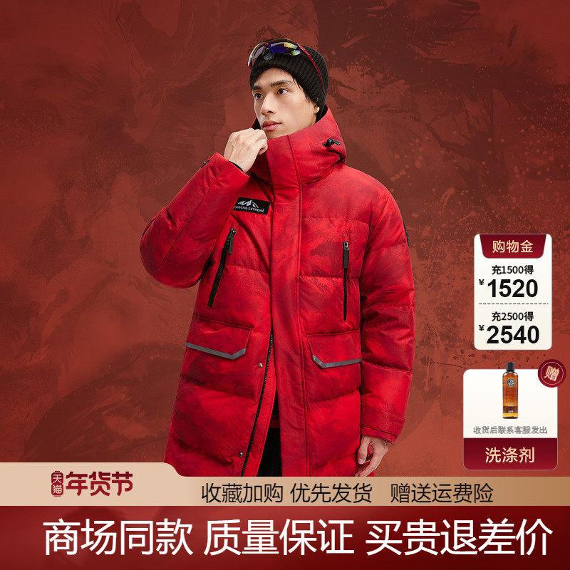 天猫波司登2025新款户外极寒蓄热零下20度鹅绒连帽保暖中长款羽绒服男