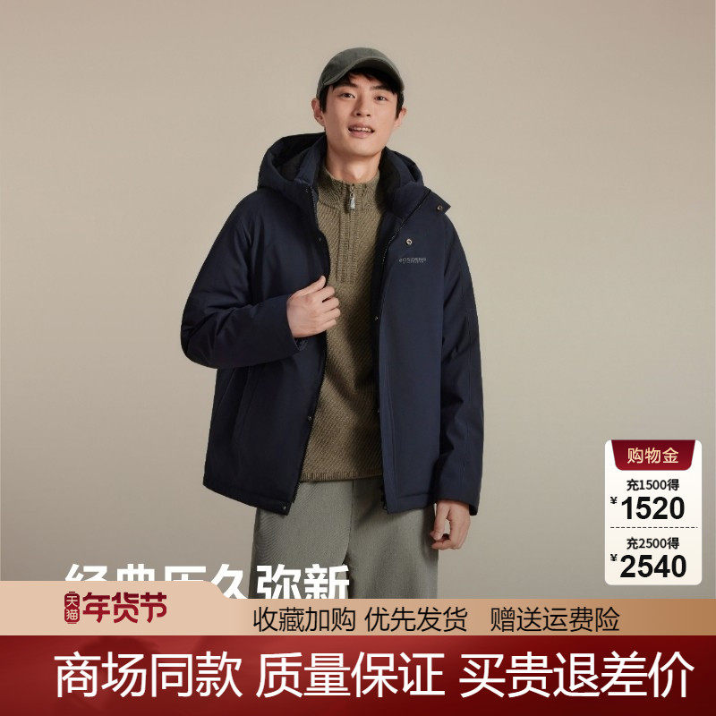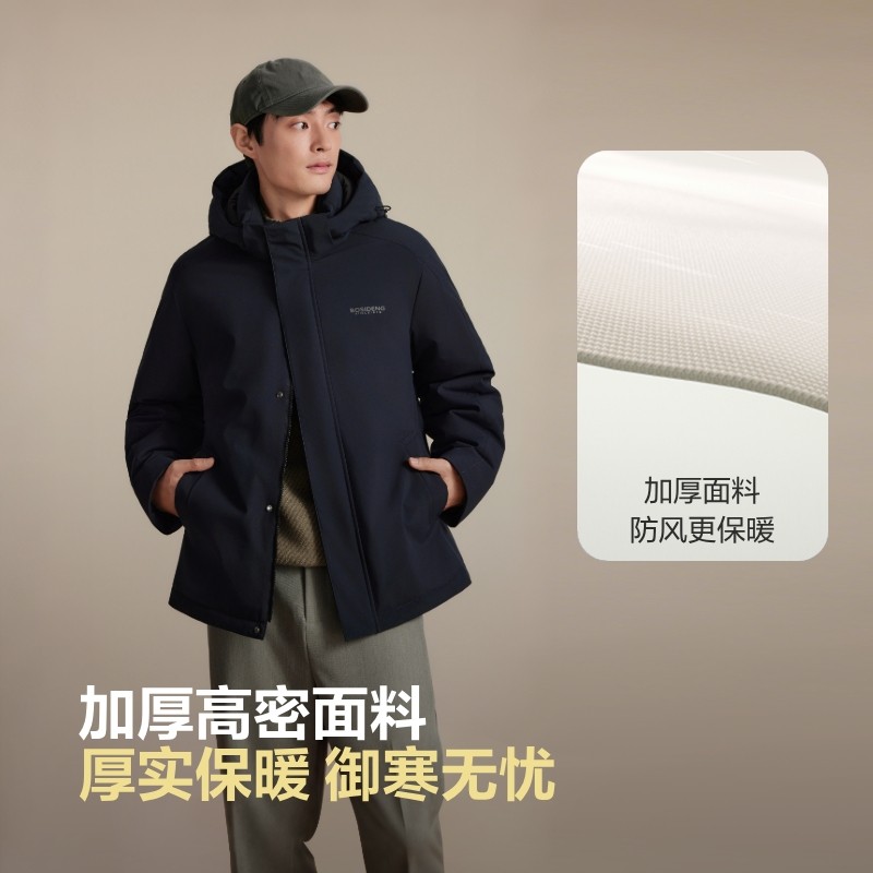【鹅绒】波司登奥莱男经典商务连帽智能NFC贴羽绒服舒适短款连帽