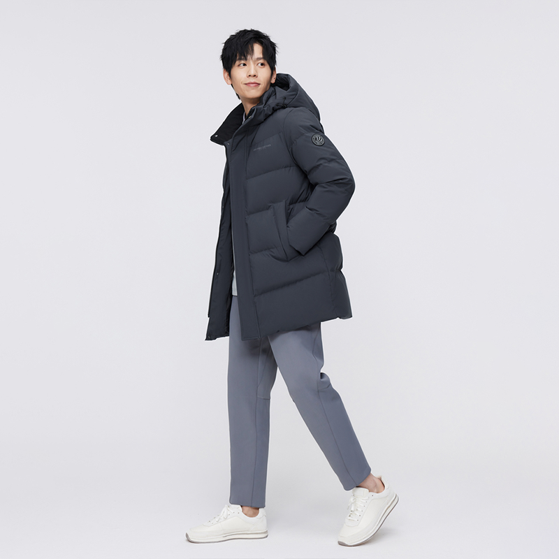 【鹅绒】波司登奥莱男经典商务连帽智能NFC贴羽绒服舒适短款连帽