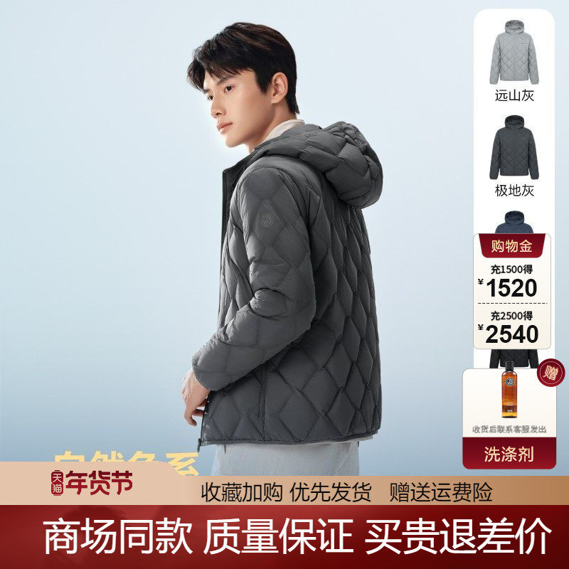 天猫波司登轻薄羽绒服男2025新款百搭短款连帽保暖鹅绒服B250131023