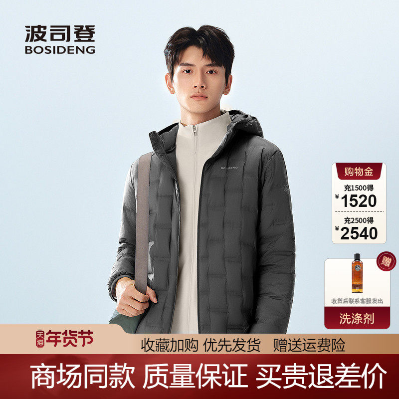 天猫波司登2025新款鹅绒轻薄连帽短款男羽绒服秋冬保暖外套B250131035