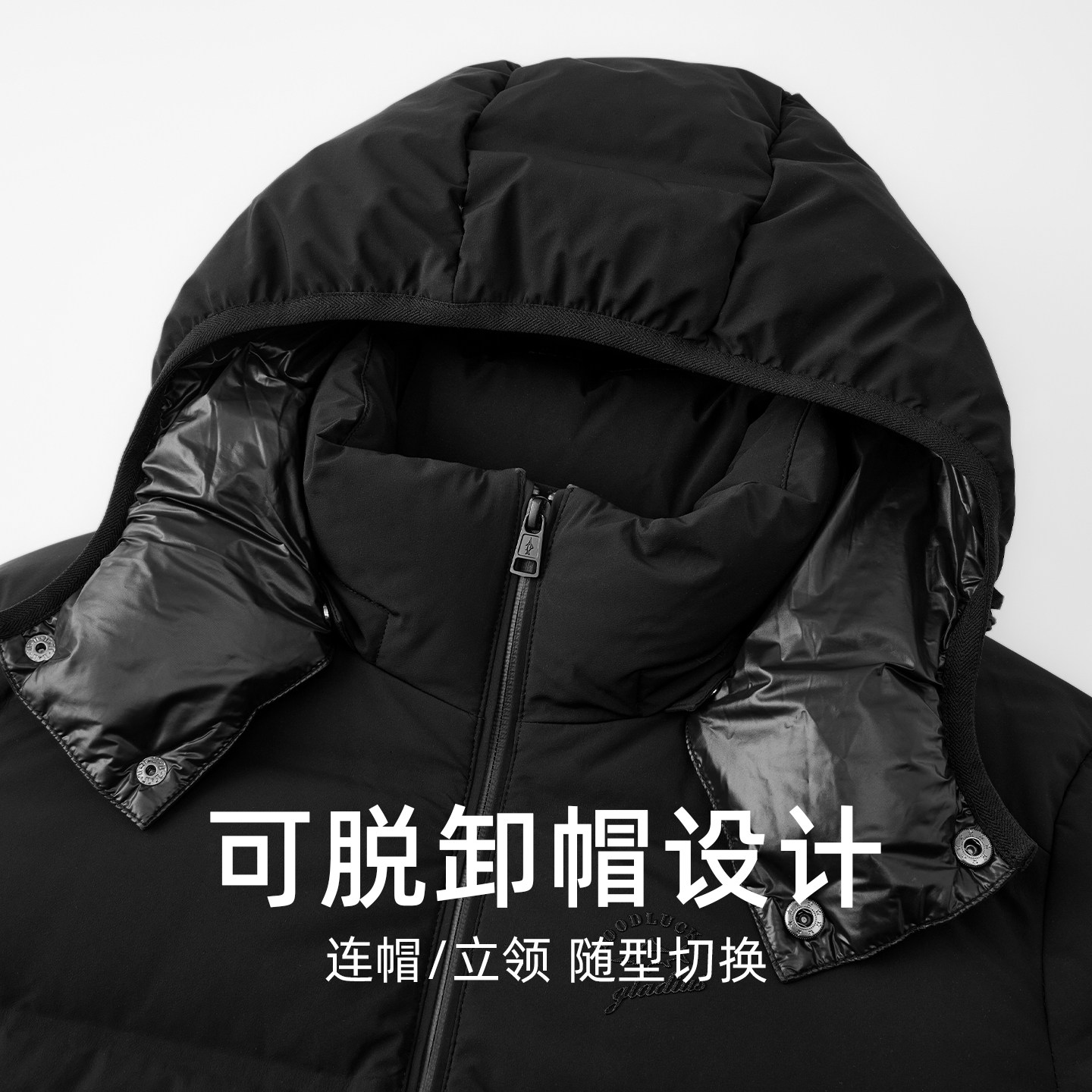 天猫【白鸭绒】德鲨黑色可脱卸连帽羽绒服男2025冬款保暖外套