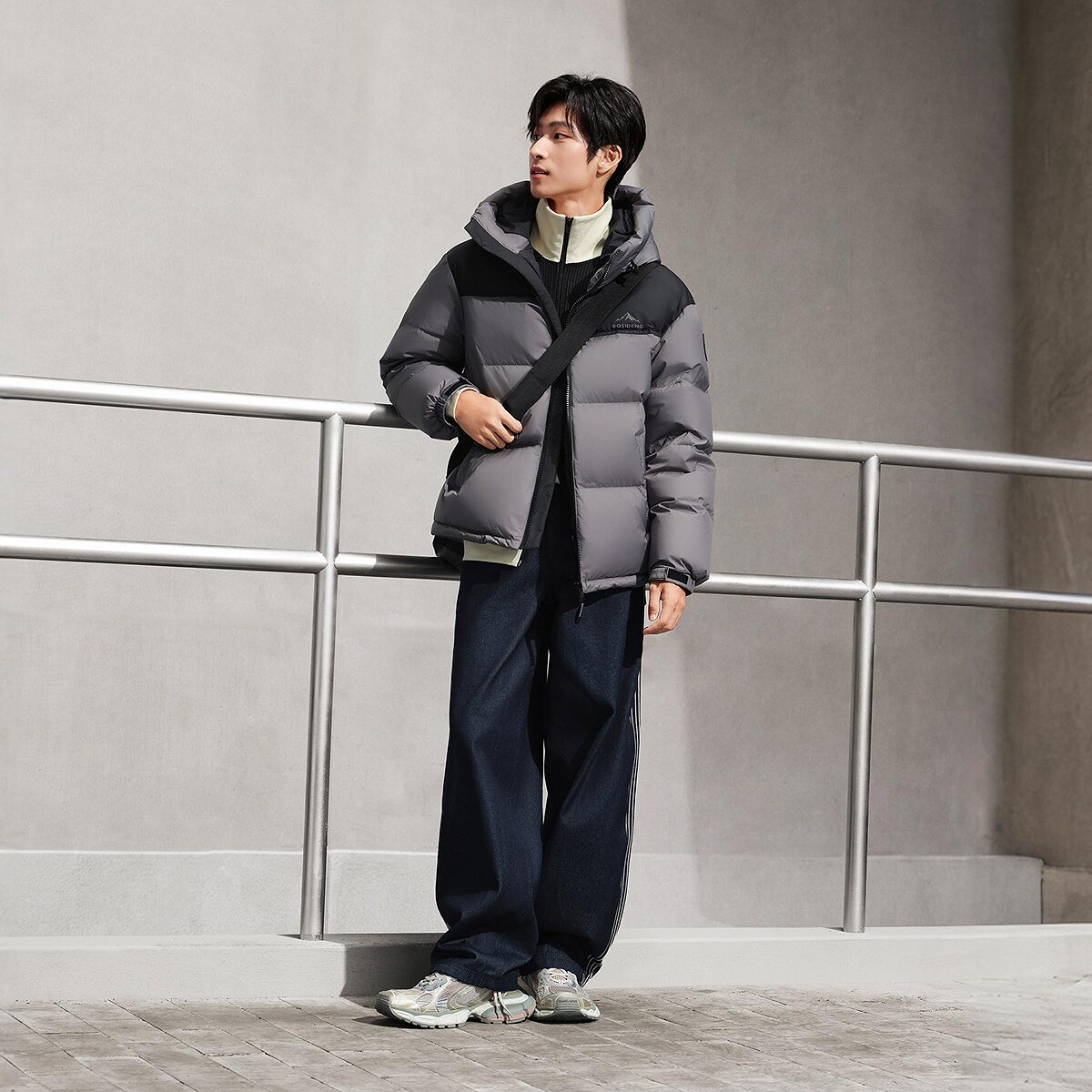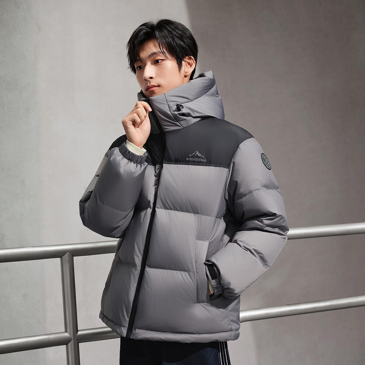 天【95%进口鸭绒】太平鸟男装 连帽羽绒服冬面包服防寒短款排骨外套