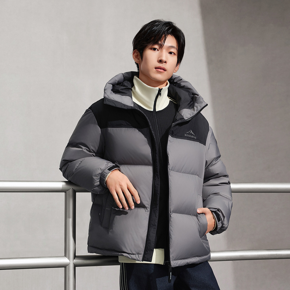 【95%进口鸭绒】太平鸟男装 连帽羽绒服冬面包服防寒短款排骨外套