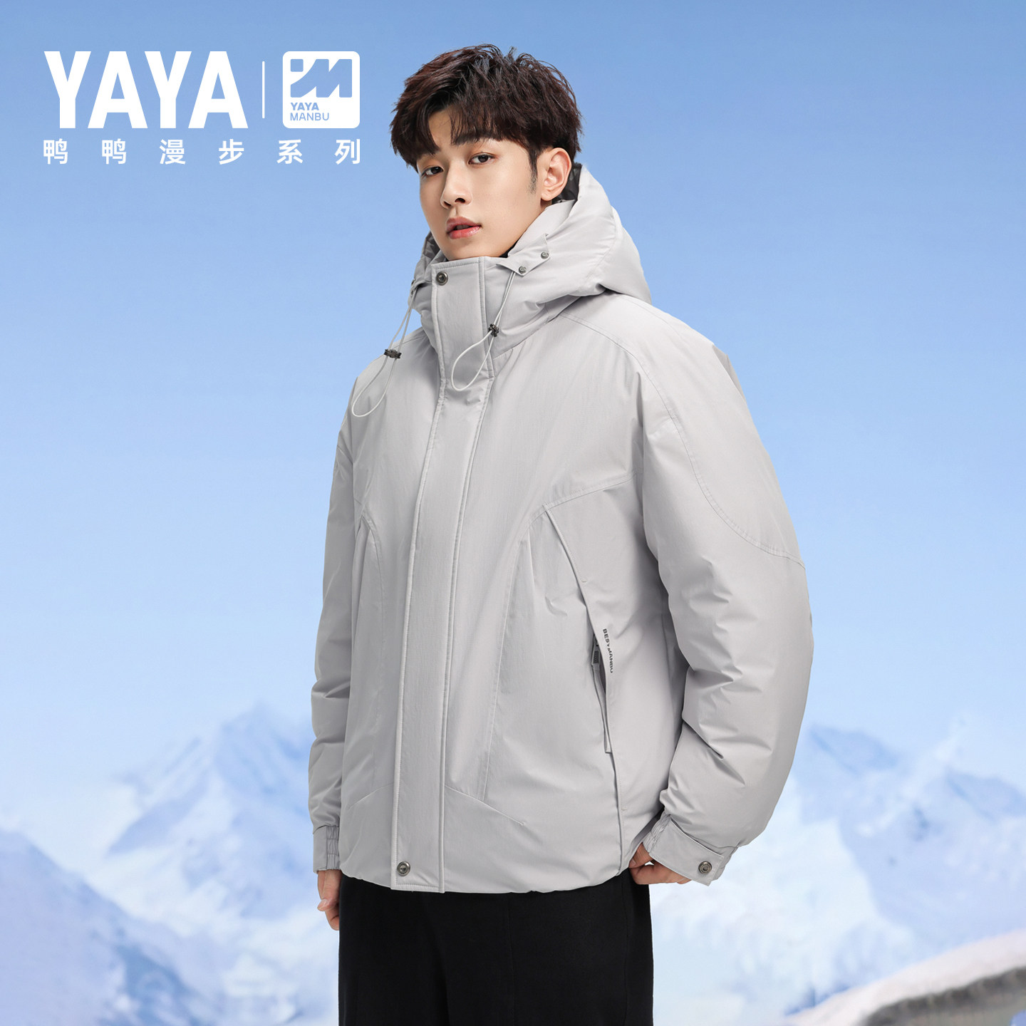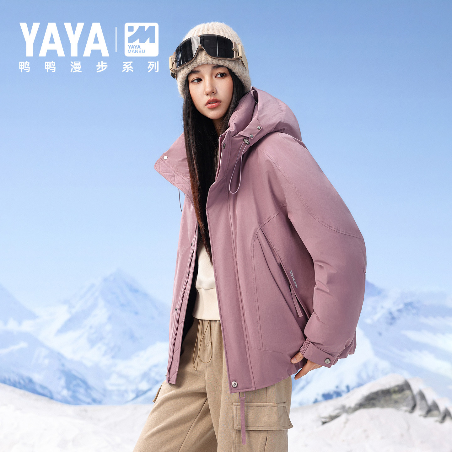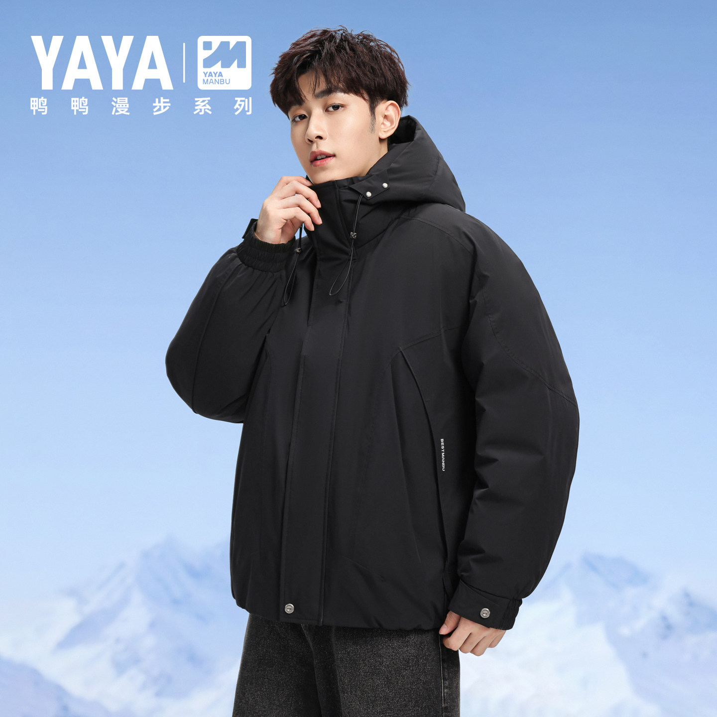 天猫鸭鸭羽绒服男女同款2025年冬季新款连帽时尚百搭休闲短款保暖外套