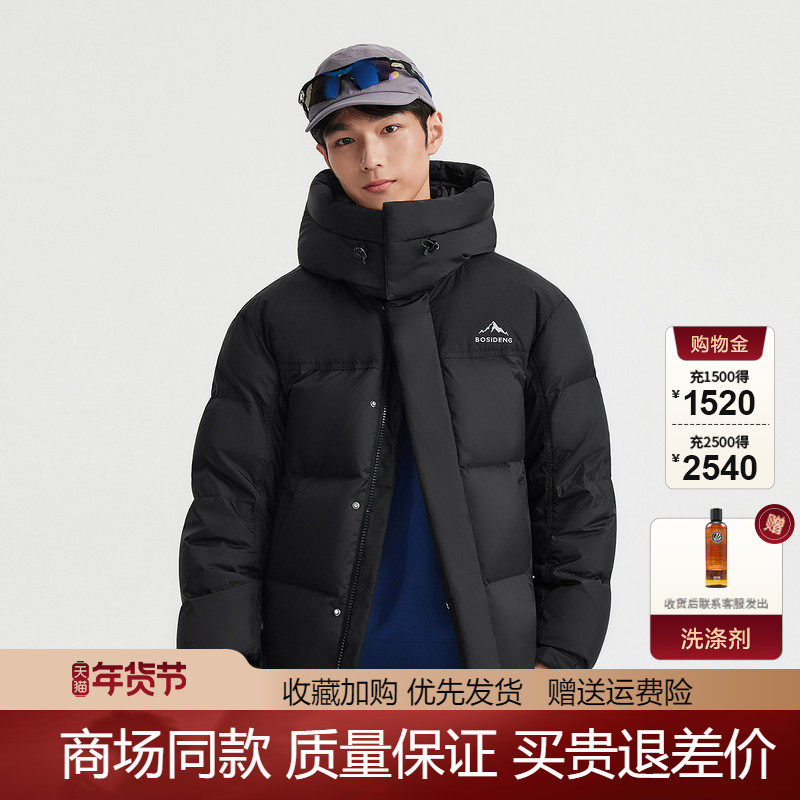 天猫波司登2025冬新款时尚短款可脱卸帽羽绒服男士加厚防风保暖羽绒服
