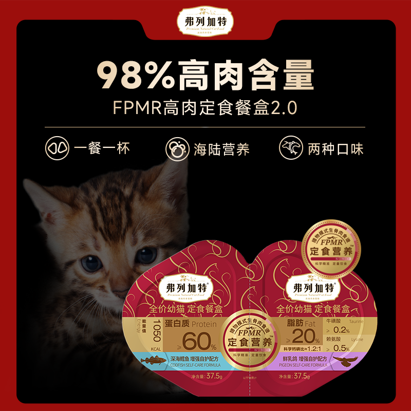 天猫弗列加特猫罐头FPMR双餐杯成猫幼猫磷虾油湿粮猫咪零食猫主食餐盒