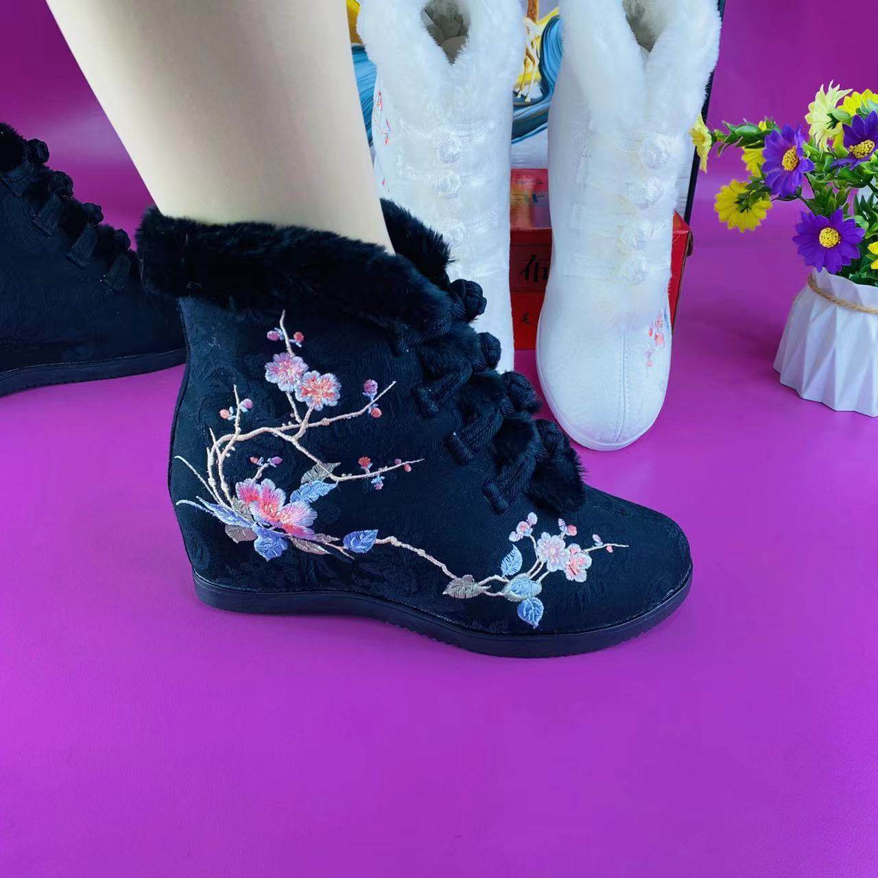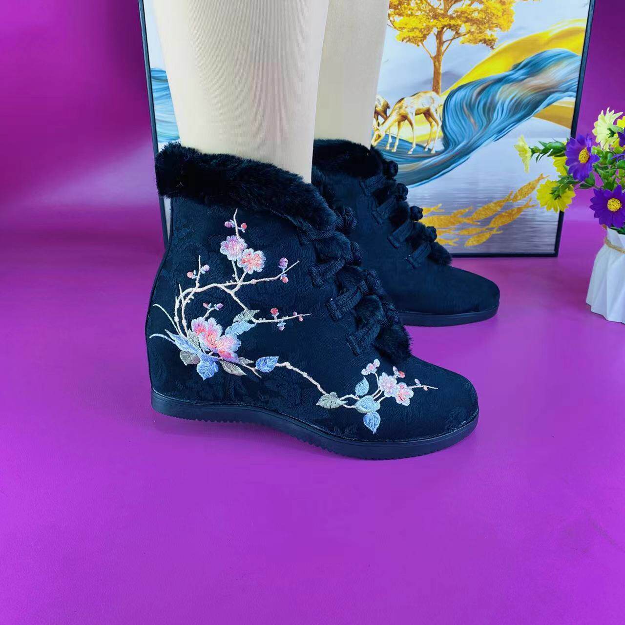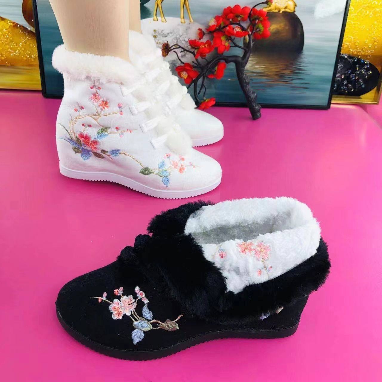 淘宝新款老北京布鞋女冬季绣花鞋加绒棉靴中国风女鞋内增高旗袍搭配鞋