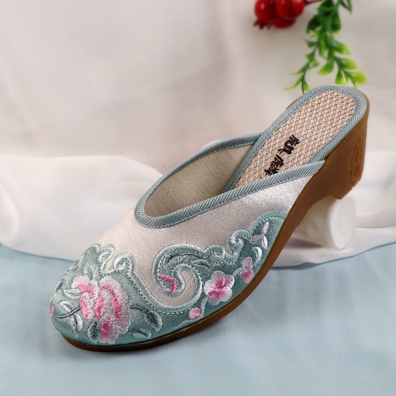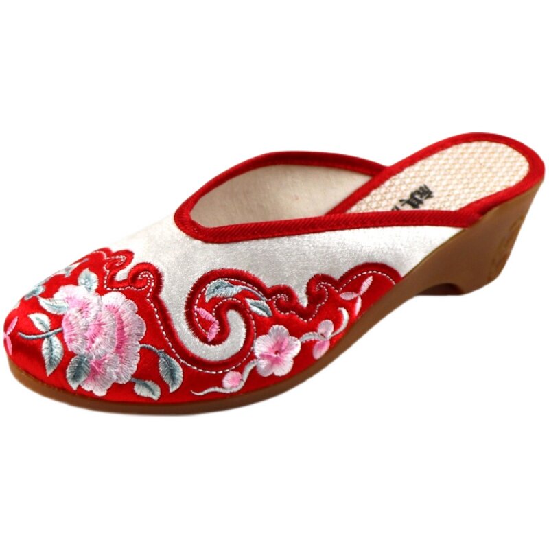 这款高跟绣花女拖鞋融合传统与现代设计,采用经典老北京布鞋工艺,结合时尚民族风元素。鞋面以精致手工刺绣花朵点缀,拼色设计层次丰富,彰显独特韵味。圆头造型舒适不挤脚,适合春秋季节穿着,透气面料保持足部干爽。3-5厘米舒适低跟,提升气质又不失稳重。鞋底采用防滑橡胶材质,行走安全稳固。整体轻便耐穿,既保留中式布鞋的温婉雅致,又融入现代时尚气息,是日常通勤、休闲出行的理想之选,展现东方女性的优雅与自信。