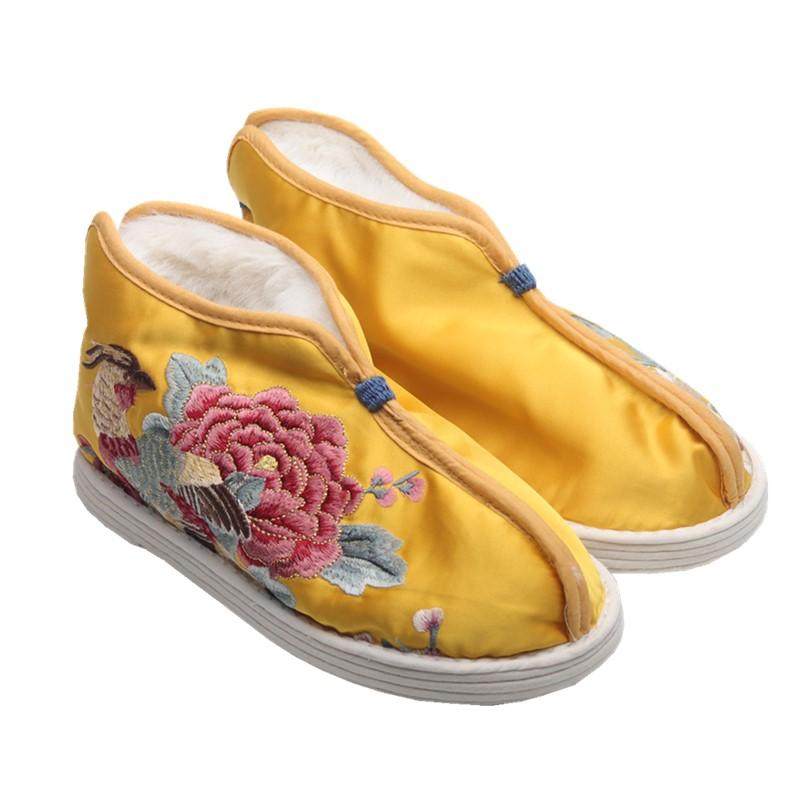 淘新款中式国风老北京布鞋女冬季加绒复古妈妈鞋保暖绣花汉服棉鞋子