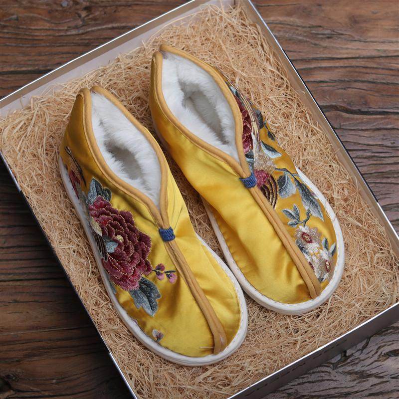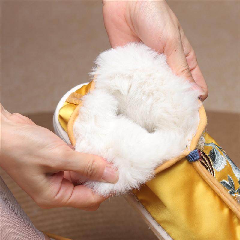 淘宝纯手工千层底布鞋女冬季保暖加绒棉鞋女超暖和缎面绣花平底一脚蹬