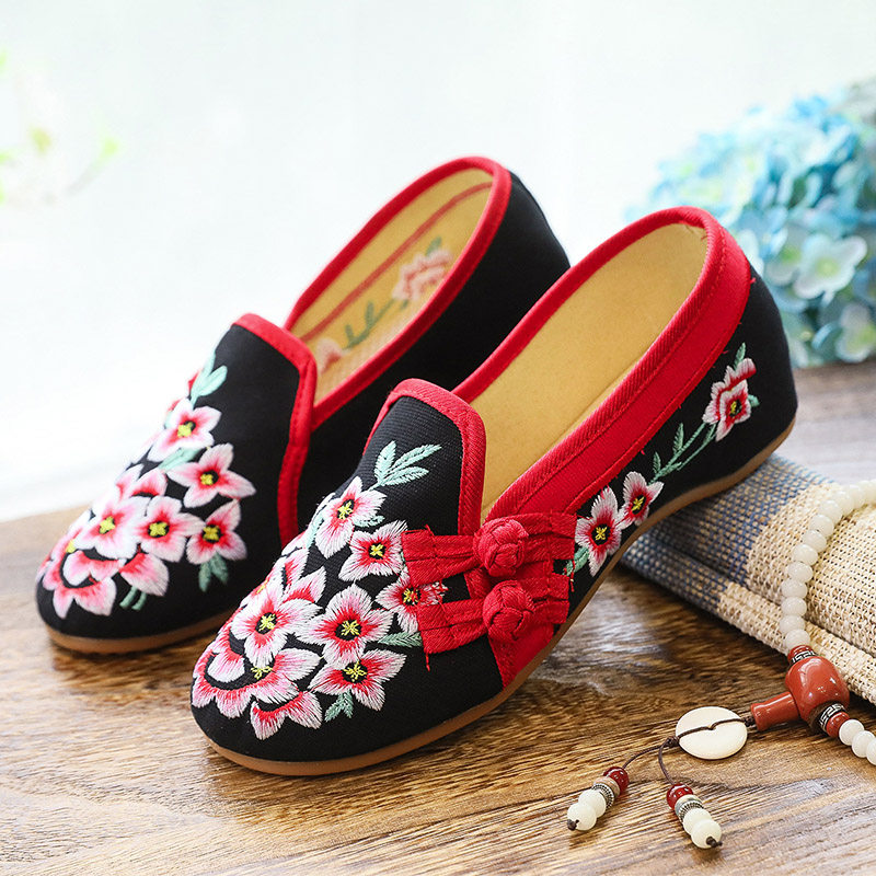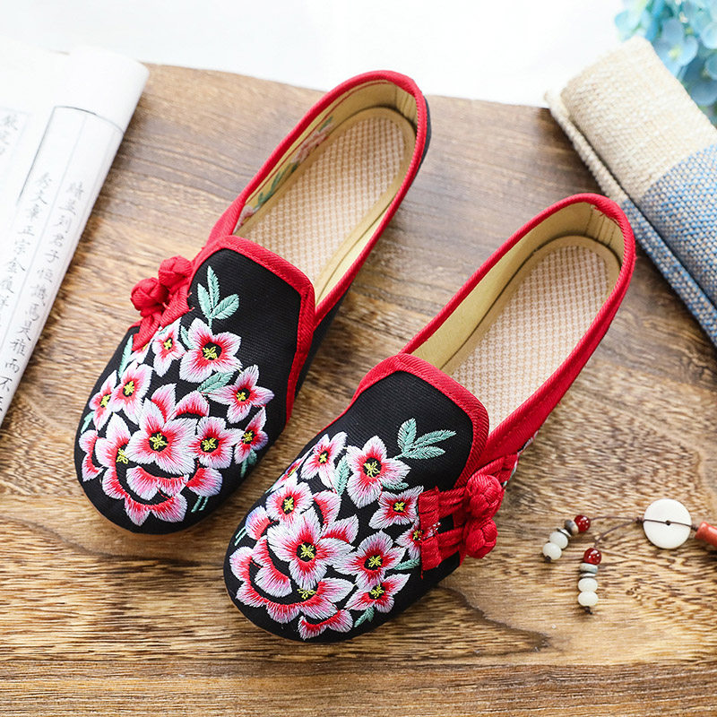 天猫老北京布鞋女民族风绣花鞋春季新款低跟桃花单鞋舞蹈鞋休闲妈妈鞋