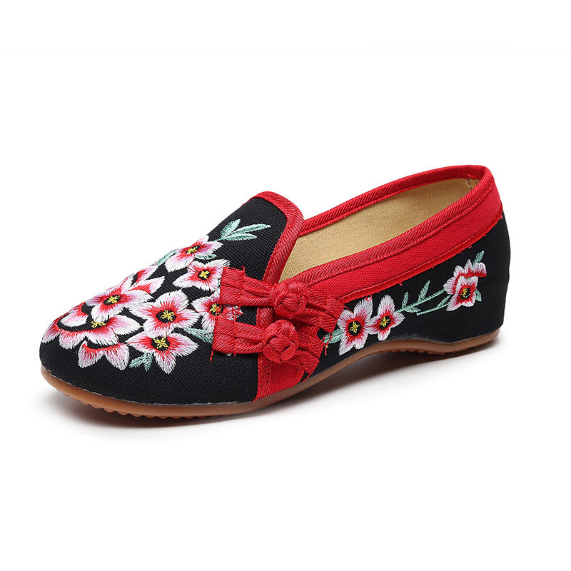 新款百合花布鞋低跟内增高单鞋老北京时尚青年女鞋学生民族舞蹈鞋