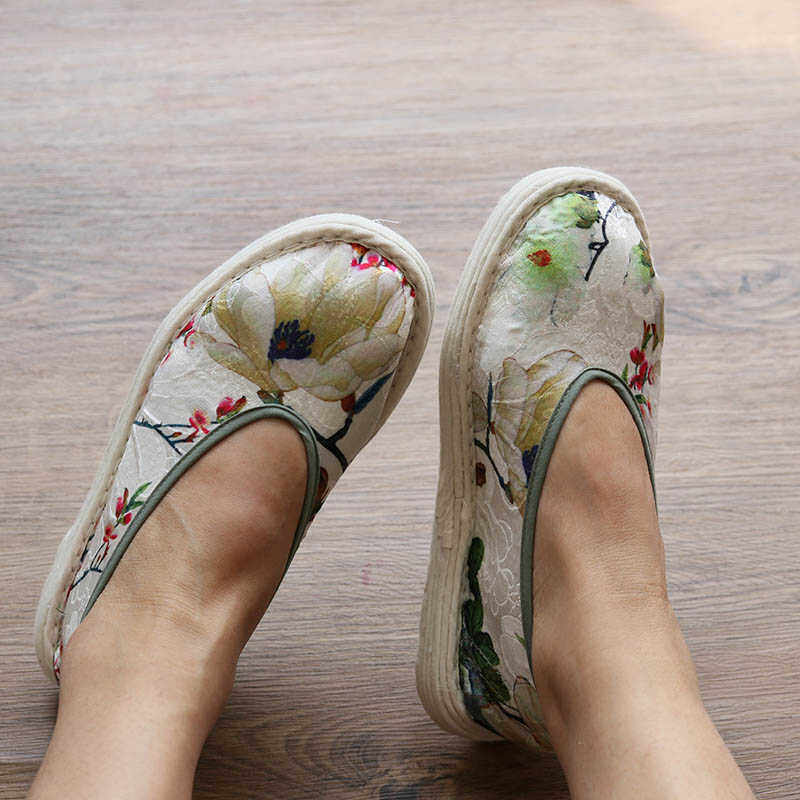 淘老北京布鞋女春夏中跟民族风女鞋复古坡跟绣花鞋中国风汉服舞蹈鞋