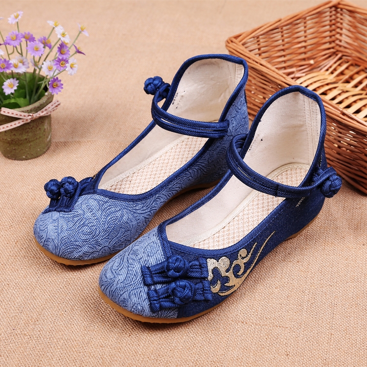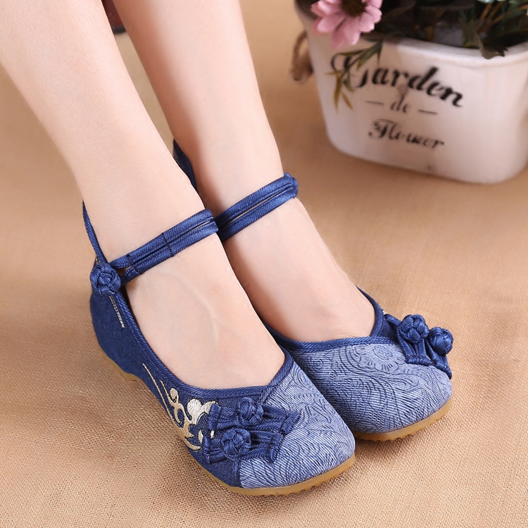 淘宝春新款工艺复古单鞋扣带绣花内增高单鞋舞蹈鞋民族女布鞋