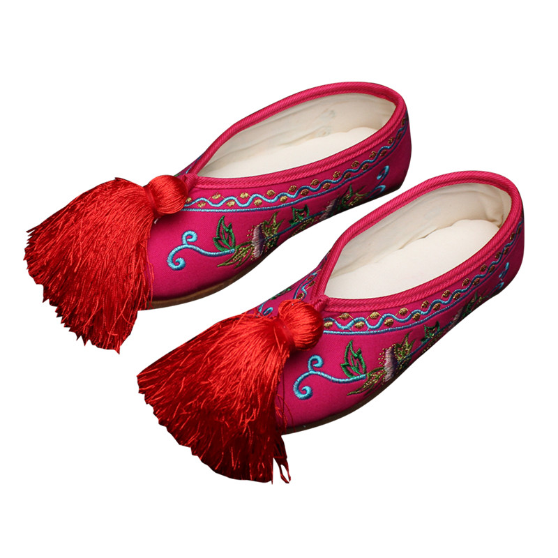 这款戏曲彩鞋专为女花旦、青衣角色设计,融合京剧、越剧及传统秀禾服元素,采用新款牛筋底,质地柔韧耐磨,贴合脚型,行走轻盈无声,适合舞台表演与日常穿着。鞋面精选优质绸缎,手工刺绣精致花鸟或传统纹样,色彩绚丽,尽显古典雅致。平底薄底设计兼顾舒适与身段展现,既符合戏曲步法要求,又提升整体造型美感。无论是专业演出、国风拍摄,还是婚礼秀禾搭配,皆能凸显东方女性的温婉与灵动,是传承戏曲美学与现代实用性的完美结合。