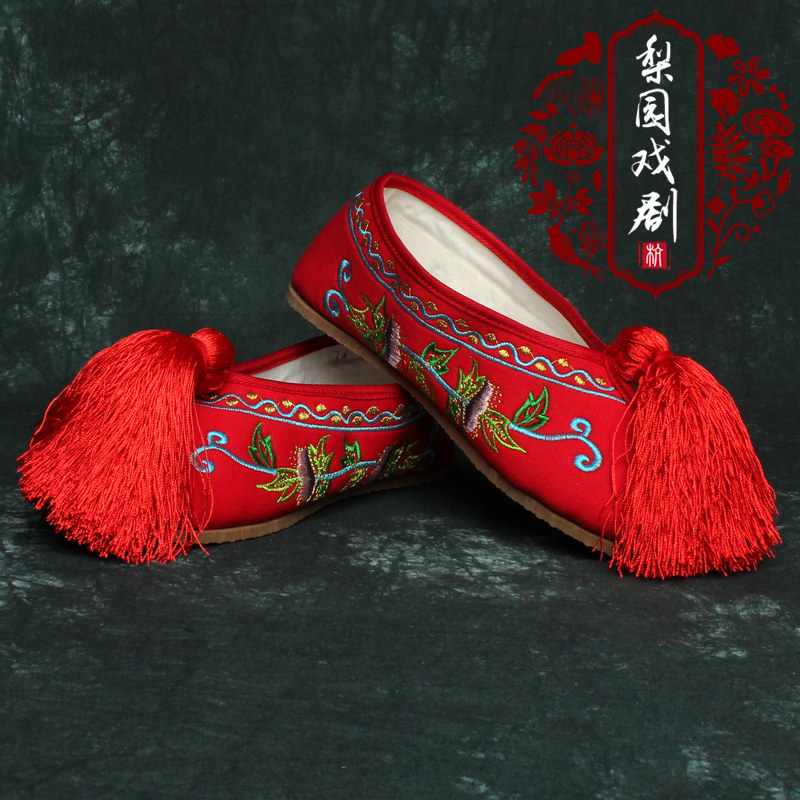 淘宝戏曲彩鞋女花旦新款牛筋底平底薄底古装京剧越剧青衣秀禾绣花戏鞋
