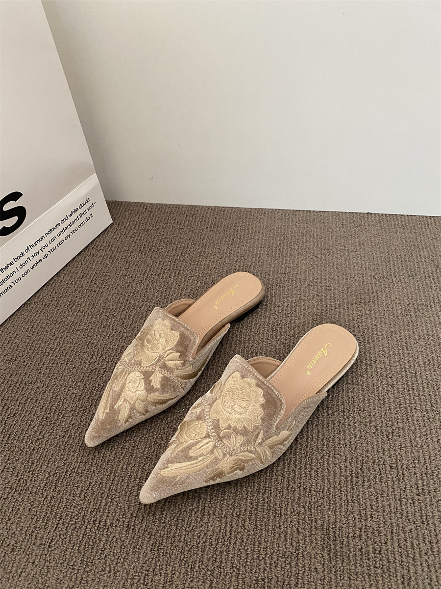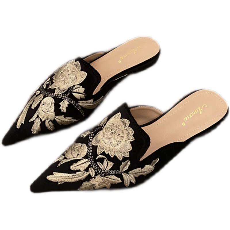 淘宝懒人鞋凉拖鞋女外穿2023夏季时尚尖头绣花半拖平底鞋包头穆勒鞋女