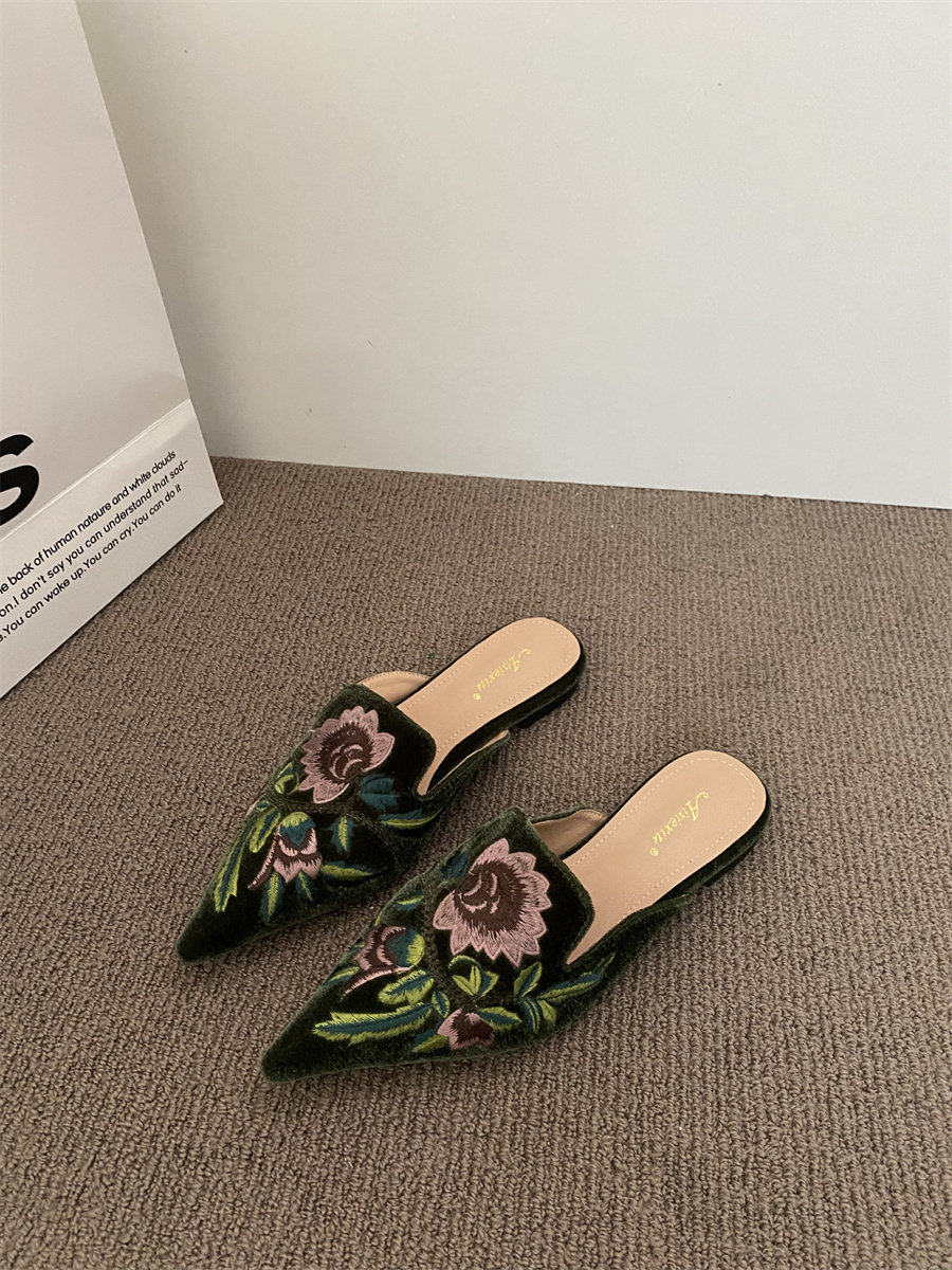 2023年夏季,懒人鞋凉拖鞋女外穿款再度引领时尚潮流。这款尖头绣花半拖平底鞋融合舒适与美感,采用轻盈透气材质,搭配精致刺绣点缀,优雅又不失个性。包头穆勒设计兼顾安全与时尚,尖头造型拉长腿部线条,轻松打造都市 chic 风格。平底行走无负担,适合日常通勤、逛街或度假穿搭。多种配色可选,轻松搭配裙装或裤装,是夏日不可或缺的百搭单品。无论是追求舒适还是注重颜值,这款鞋都能满足现代女性的多重需求,让每一步都自在又迷人。