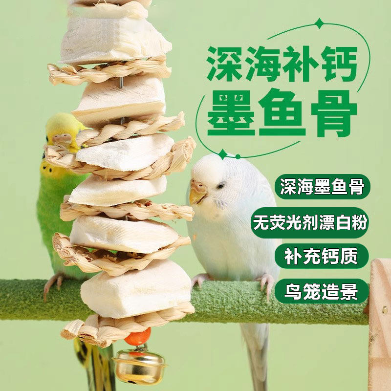 墨鱼骨鹦鹉专用玄凤虎皮牡丹补钙磨牙鸟粮食吊串啃咬玩具,是专为小型鹦鹉(如玄凤、虎皮、牡丹等)设计的健康鸟类用品。采用天然墨鱼骨制成,富含钙质,有助于补充鸟类日常所需的矿物质,促进骨骼发育与羽毛健康。同时,其坚硬质地可有效帮助鹦鹉磨牙,防止喙部过长,满足其天然啃咬需求。产品配有安全吊串,可悬挂于鸟笼内,方便鸟儿啄食与玩耍,兼具实用性与趣味性。无毒环保材质,安全放心,是提升鹦鹉生活质量、保障其身心健康的理想选择。每日互动啃咬,还能缓解压力,增进人鸟感情。