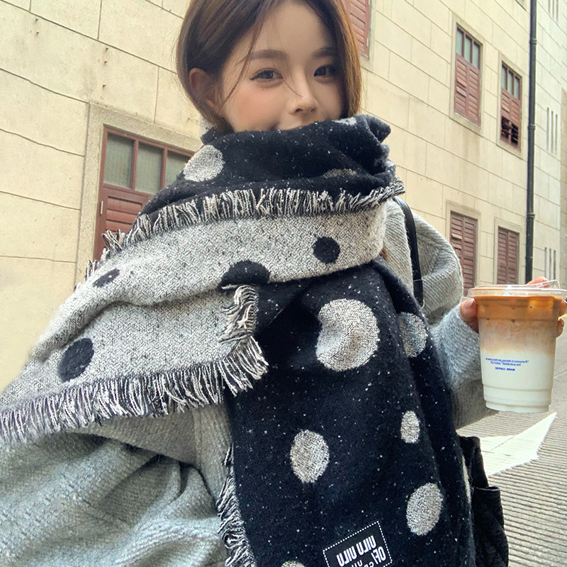 淘宝红色韩系氛围感双面波点针织围巾女士秋冬季百搭加厚保暖防寒围脖