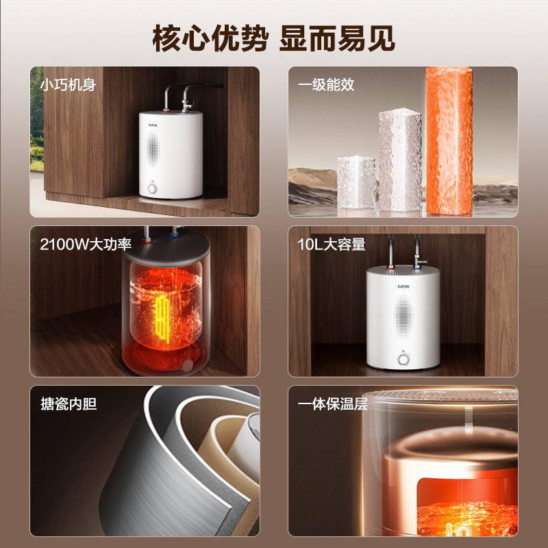 天猫苏泊尔UK08plus小厨宝台下小型家用厨房电热水器速热储水式热水宝