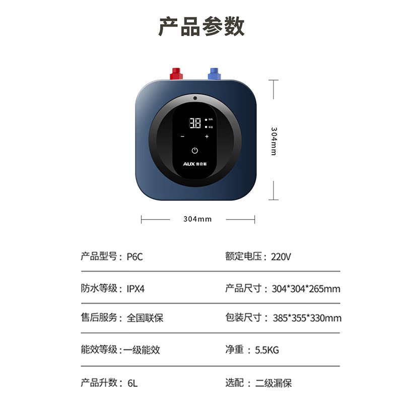 淘宝奥克斯小厨宝厨房电热水器小型速热家用台下热水宝储水式一级能效