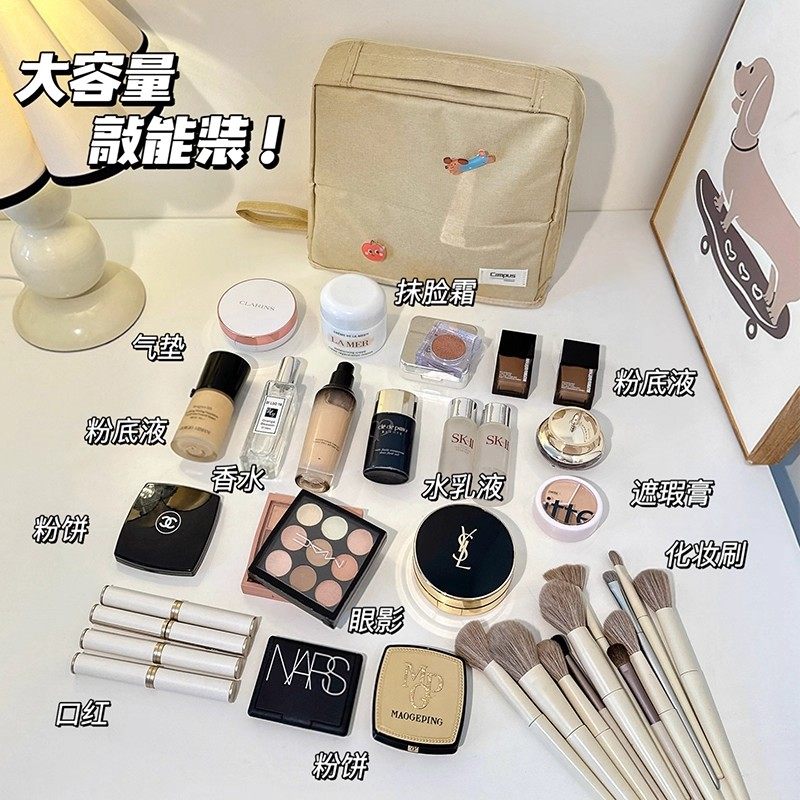 天猫化妆包大容量女便携式2025新款高端分区收纳旅行手提洗漱整理包化妆刷化妆品收纳包便携外出立式可折叠耐脏