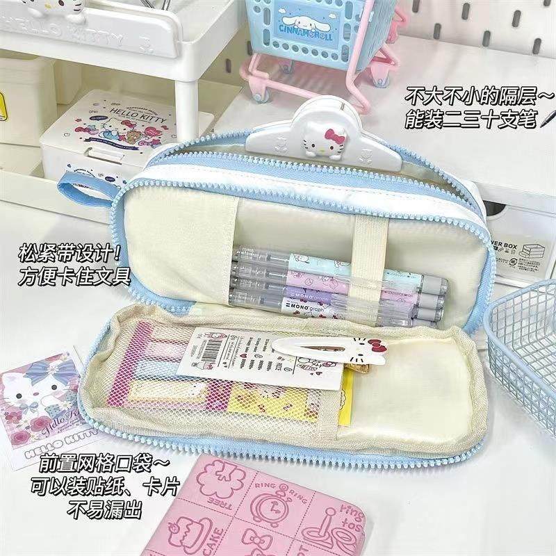 淘宝高颜值大容量简约KT猫抽绳笔袋学生文具盒少女心收纳化妆包
