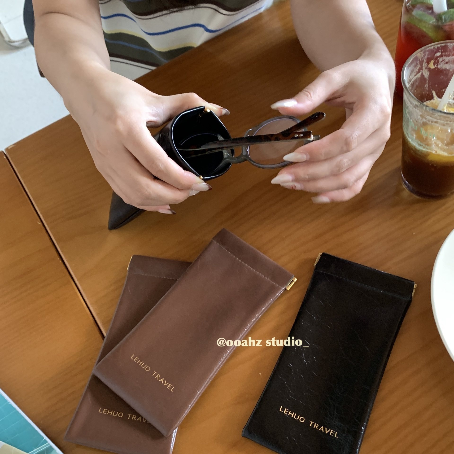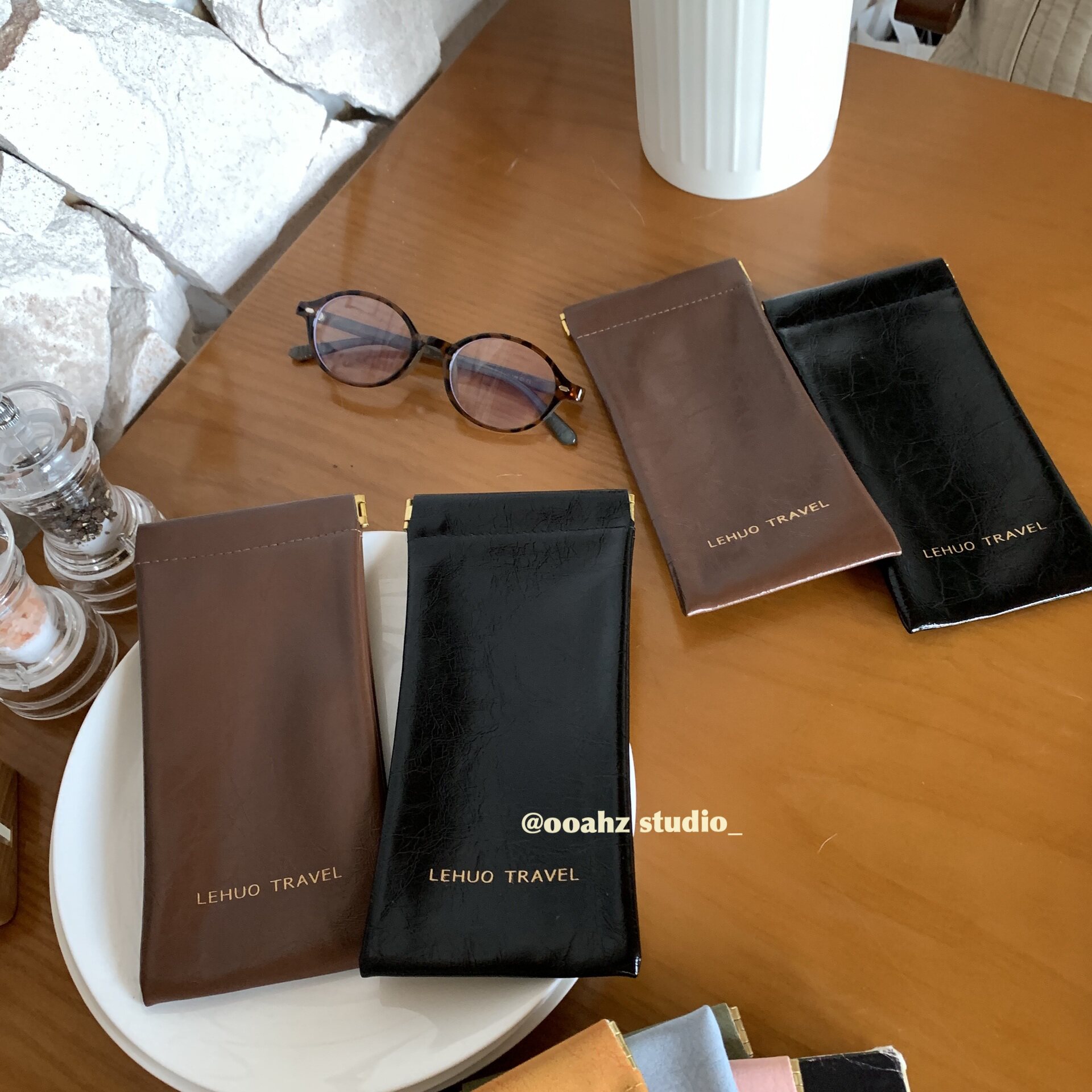 淘宝漆皮黑棕弹片夹~眼镜墨镜太阳镜抗压保护盒 便携饰品口红收纳包袋
