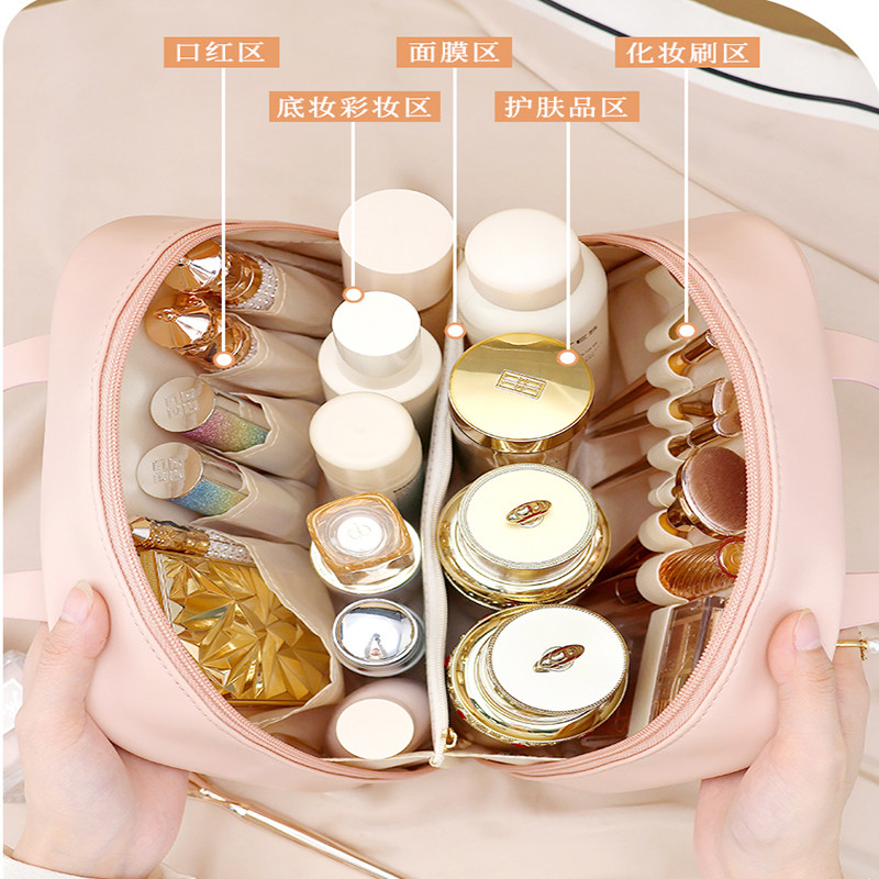 2026年新款高端女性化妆包,专为现代精致女性设计,融合时尚美学与实用功能。采用优质防水面料,质感细腻,耐磨易清洁,搭配精致金属拉链与提手,彰显高端品味。大容量分层设计,科学分区收纳口红、粉底、眼影、化妆刷等化妆品,井然有序,轻松取用。便携手提+可肩背设计,满足日常通勤、差旅出行多种场景需求。轻盈小巧却空间充裕,是旅行、约会、办公的完美伴侣。多款时尚配色可选,既是实用收纳包,也是出街点睛配饰,让美丽随行,优雅随行。