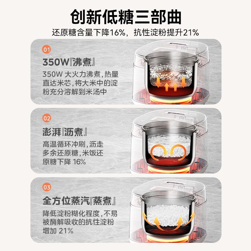 淘低糖电饭煲陶瓷釉智能电煮锅大容量家用多功能蒸煮一体炒锅