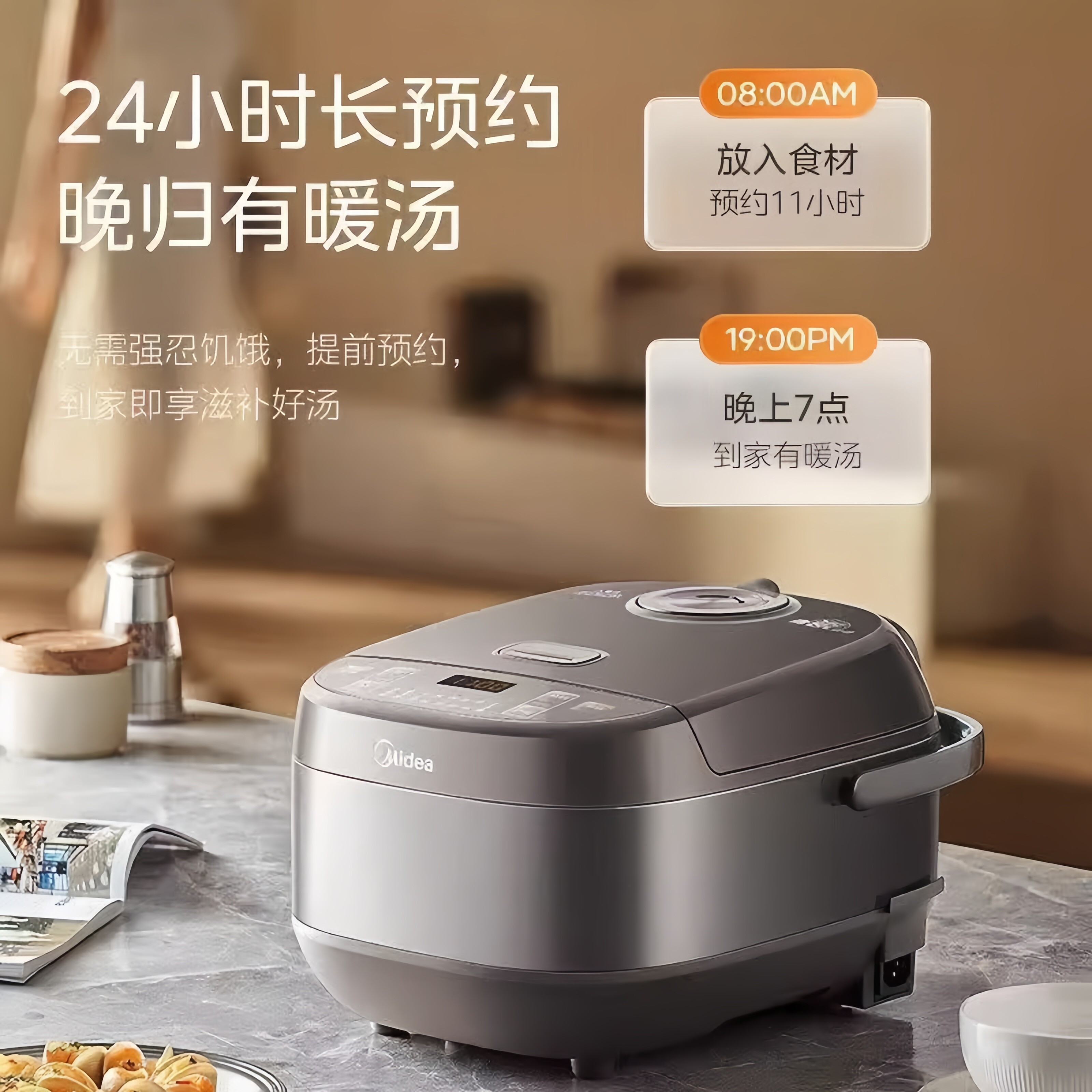 美的4L大容量智能电饭煲,专为现代家庭设计,集煮饭、煲汤、蒸煮等多功能于一体。采用智能微压加热技术,精准控温,让米饭松软香甜,汤品浓郁营养。配备24小时预约功能,提前设定,回家即享热饭热汤。4L大容量可满足3-6人家庭需求,适合日常三餐或聚餐使用。内胆采用厚釜材质,导热均匀,耐磨易清洁。简约触控面板操作便捷,多种菜单一键选择,满足不同食材烹饪需求。安全防溢设计,使用更安心。美的电饭煲,以智能科技提升厨房效率,让美味更简单,是家庭厨房的理想之选。