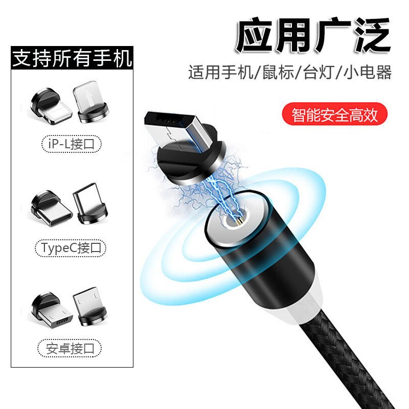 淘热销款单针540度旋转磁吸线TypeC直弯头强磁编织数据线适用苹果6-14畅享OPPO安卓手机台灯耳机音箱分离式充电