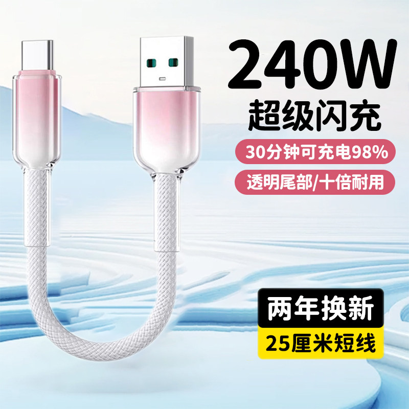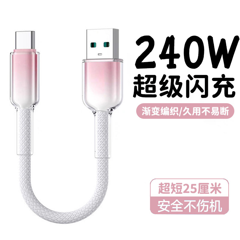 这款240W超级闪充便携短线移动电源,专为高效快充设计,兼容华为、荣耀、vivo、小米、OPPO等主流品牌设备。采用加粗编织线材,坚韧防缠绕,有效防断裂,经久耐用。Type-C接口支持大功率传输,实现极速充电,大幅缩短等待时间。短款设计轻巧便携,可轻松放入包袋或插在充电宝上随身携带,告别冗长线缆困扰。内置智能芯片,多重安全保护,确保充电稳定高效。无论是日常通勤、差旅出行,还是户外应急,都是理想的快充伴侣。一根线满足多设备快充需求,实用性与耐用性兼具,是现代快节奏生活的必备配件。