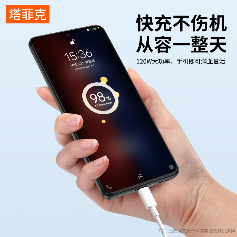 天猫塔菲克type-c数据线120w瓦适用vivoiqoo7手机充电器插头iqoo5pro闪充线专用iqoo8正品pro超级快充安卓2米加长