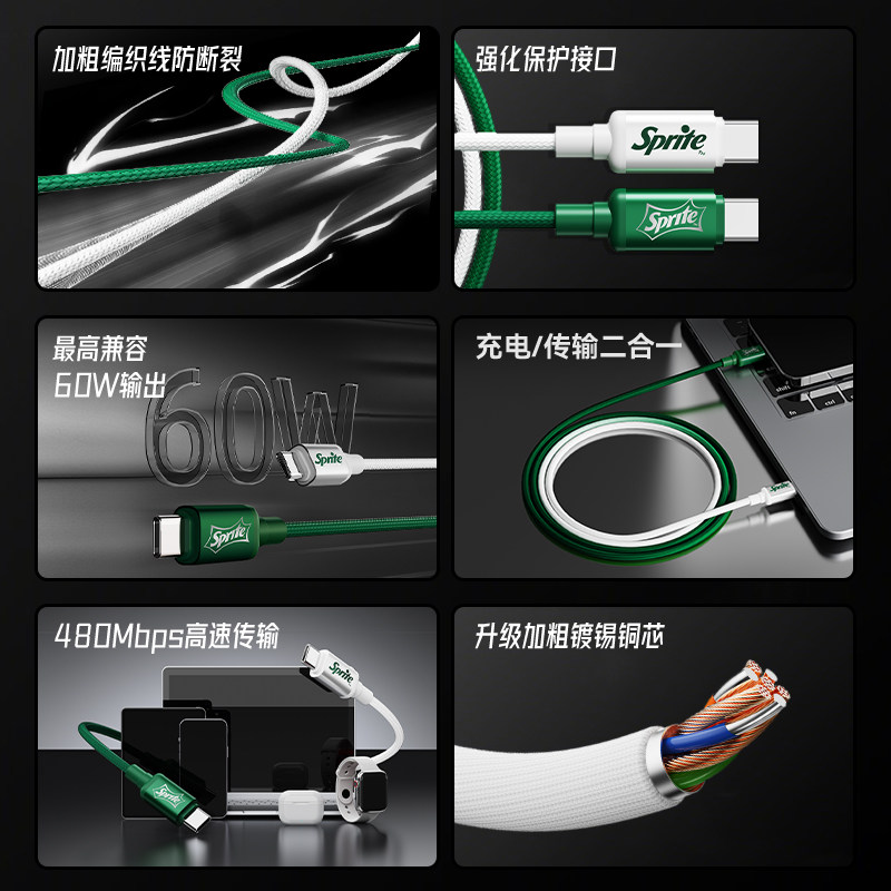 可口可乐与雪碧联名推出的C16银速渐变系列快充数据线,融合经典品牌元素与时尚设计,采用Type-C接口,兼容安卓与苹果设备(需搭配相应转接头)。数据线外观以银白渐变为主色调,印有可口可乐与雪碧标志性Logo,兼具潮流感与辨识度。支持快充技术,传输稳定高效,满足日常充电与数据传输需求。线身采用高强度TPE材质,抗拉扯、耐弯折,使用寿命长。长度适中,便携易用,是追求个性与实用兼具的科技配件。无论是自用还是作为礼品,都彰显独特品味,为数码生活增添一抹清爽活力。