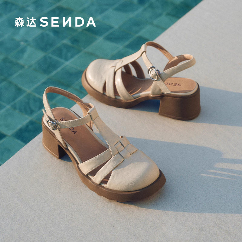 天猫森达罗马凉鞋女款2025夏新休闲不累脚粗跟猪笼洞洞凉鞋ZTG13BH5