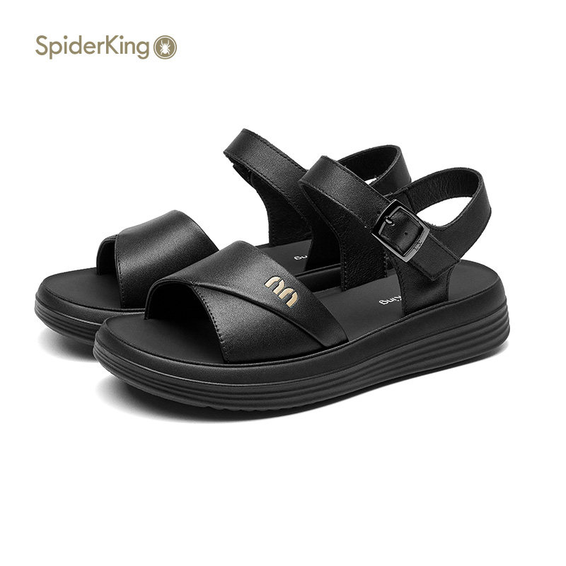 天猫蜘蛛王女鞋官方旗舰店正品2025夏季新款一字扣女凉鞋柔软真皮休闲