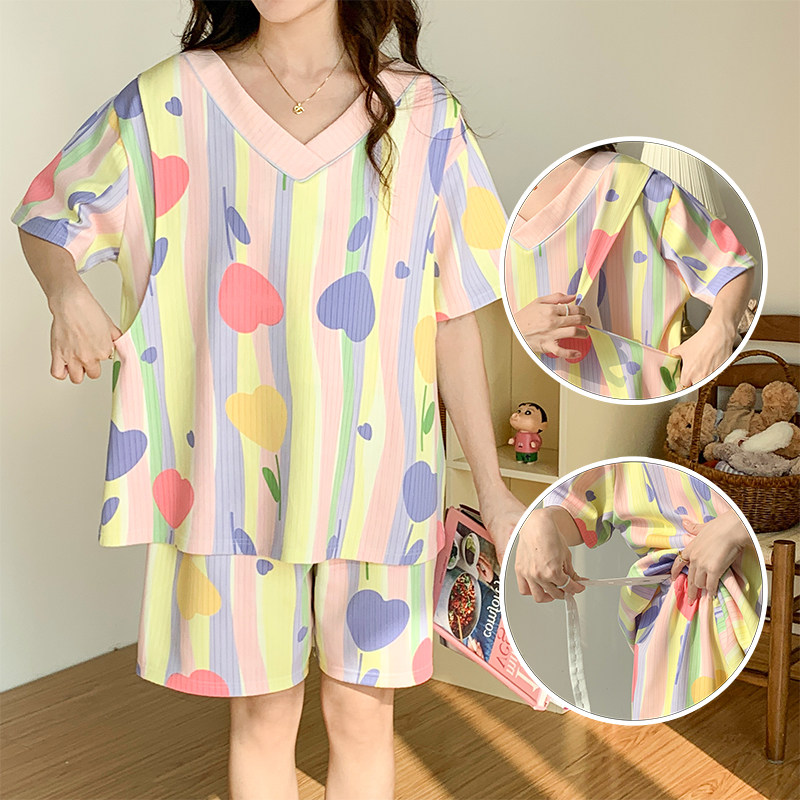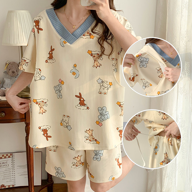 淘两件套短袖孕妇睡衣夏季月子服6月份7产后哺乳期喂奶套装夏天薄款
