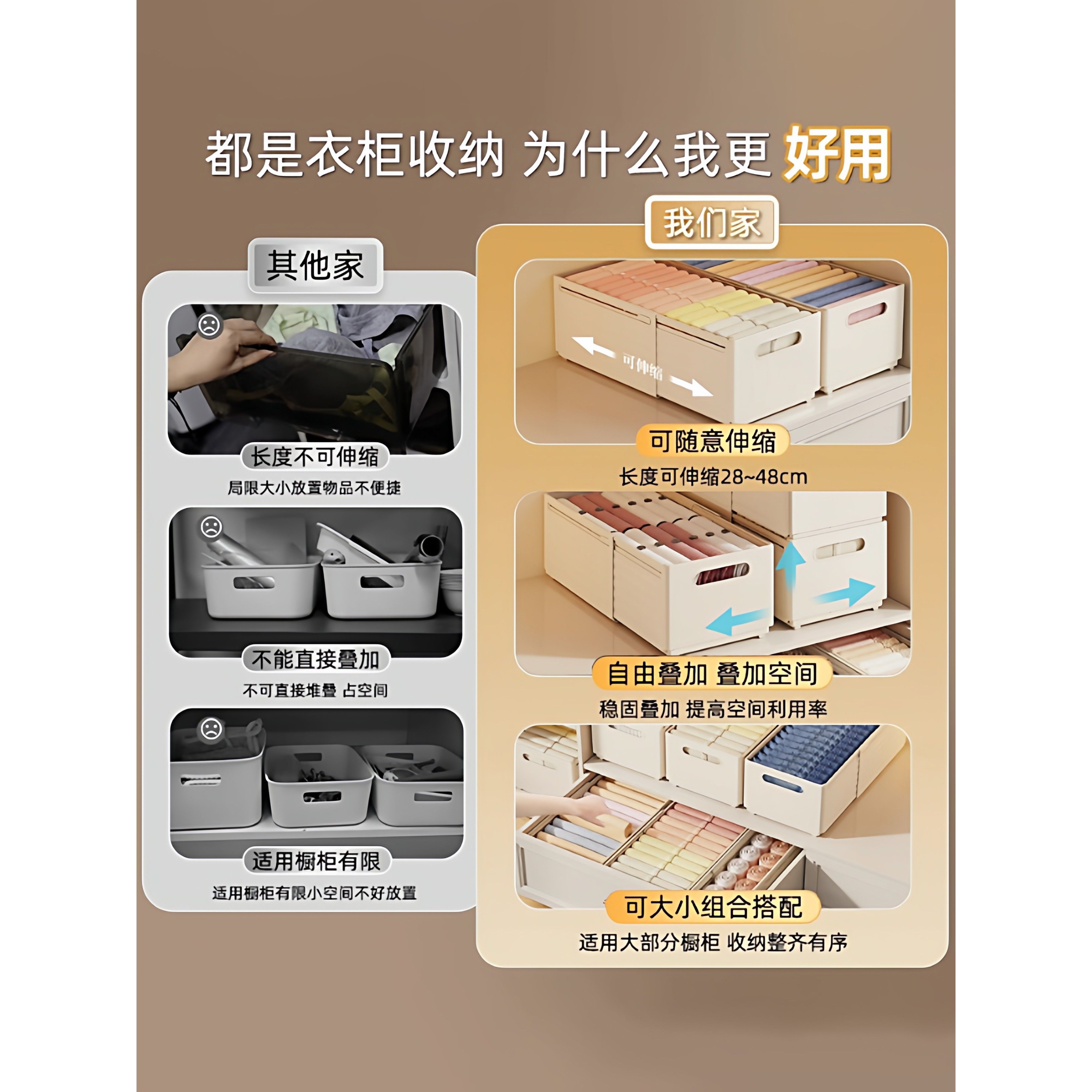 天猫可伸缩衣服收纳盒家用衣柜收纳分层神器厨房橱柜整理盒杂物压缩袋