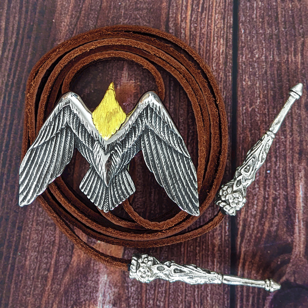 这款俯冲飞鹰波洛领带,融合欧美复古风格与现代潮流设计,采用优质植鞣麂皮绒材质,质感细腻、柔软耐用。绳结部分以精致金属飞鹰吊坠点缀,造型凌厉生动,象征自由与力量,极具视觉冲击力。适用于牛仔衬衫、皮夹克或休闲西装,轻松打造西部风情或都市雅痞造型。男女皆宜,是追求个性穿搭的时尚之选。无论是日常出街还是主题派对,这款bolo tie都能为整体造型增添一抹复古不羁的亮点,彰显独特品味与不羁态度。