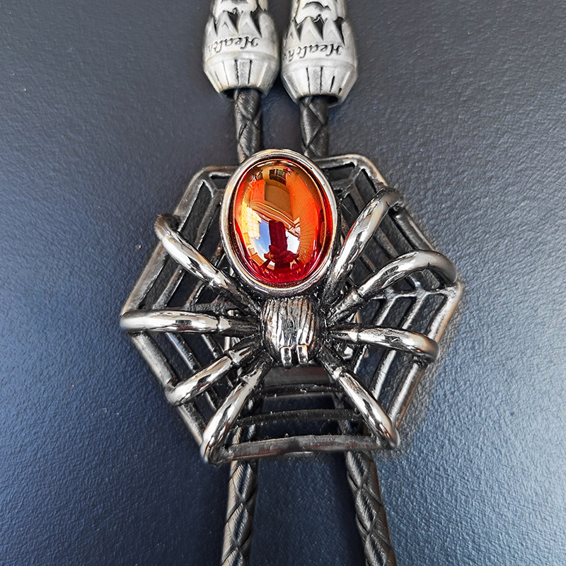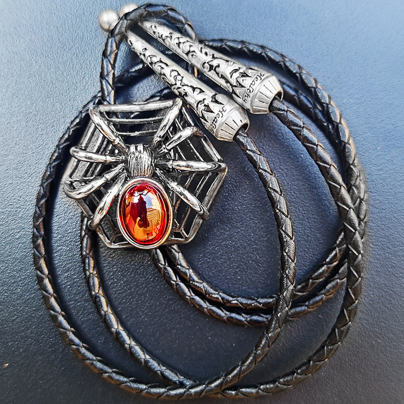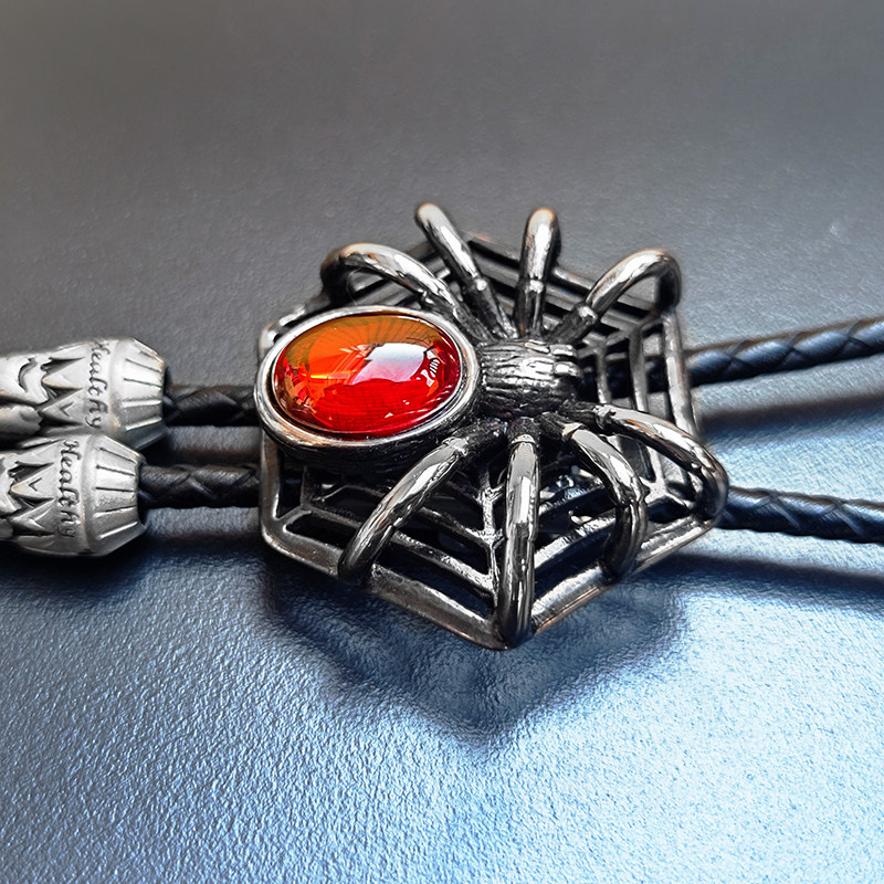 淘宝红蜘蛛网波洛领带猫眼石bolo tie万圣节惊悚哥特装扮配饰cosplay