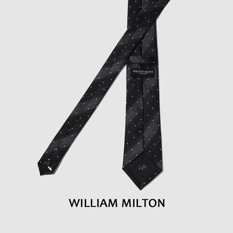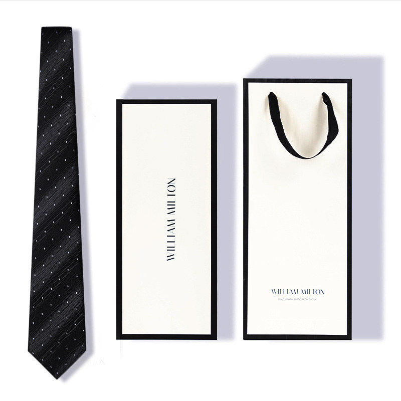 WILLIAM MILTON墨色烟雨黑色条纹真丝领带,以高级桑蚕丝精心织造,融合东方水墨意境与现代商务美学。经典黑色基底上,细腻条纹如烟雨朦胧,低调中彰显设计感与艺术品味。100%真丝材质光泽柔润,触感顺滑,垂坠感极佳,完美契合高端商务场合。搭配精致礼盒包装,尽显尊贵质感,是商务精英彰显品位的理想之选。无论是重要会议、商务洽谈,还是正式晚宴,这款领带都能为整体造型增添儒雅与自信。WILLIAM MILTON以匠心工艺诠释男士优雅,成就非凡格调。