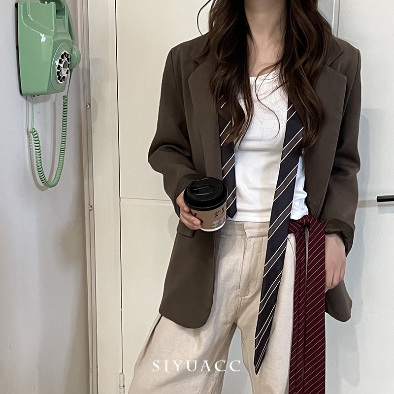 淘宝高智感咖色条纹领带韩系秋冬美拉德休闲领巾百搭腰带系腰配饰女