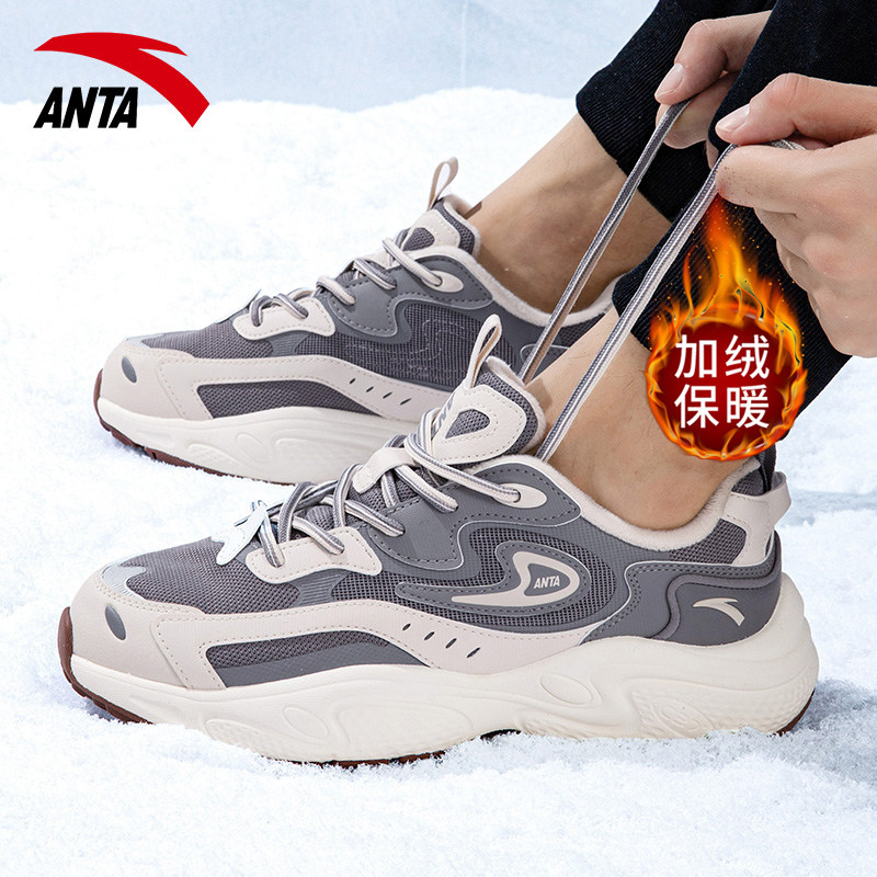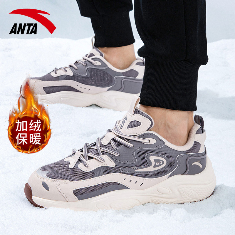 天猫安踏男鞋星光老爹鞋2026新款秋冬男款加绒休闲鞋复古软底运动鞋男