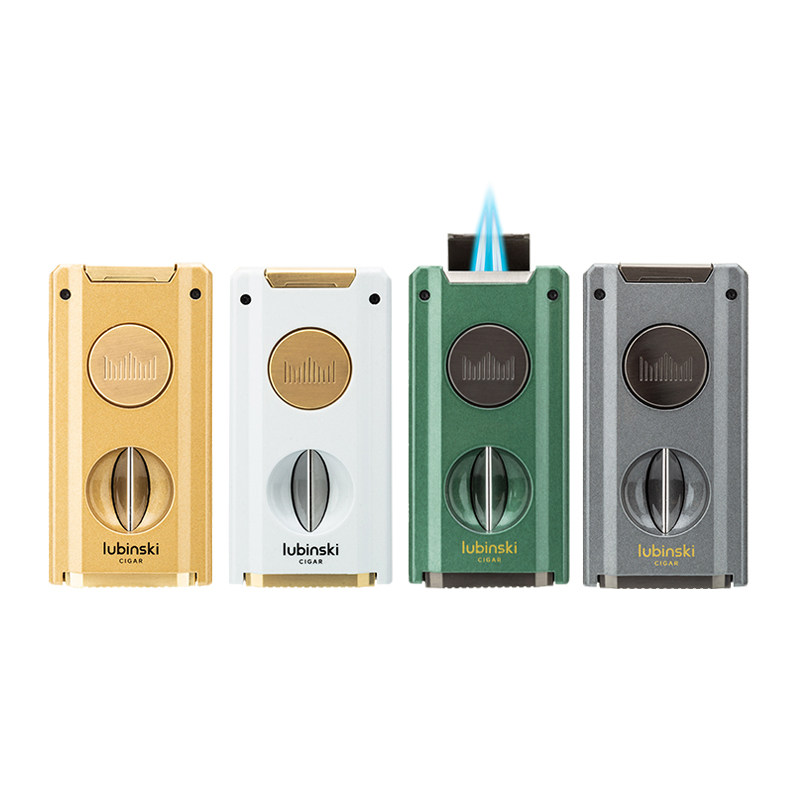 Lubinski鲁宾斯基多功能雪茄打火机是一款专为雪茄爱好者设计的实用配件。它不仅配备高效防风火焰,确保在各种环境下都能轻松点燃雪茄,更集成了精密钻孔器和通针功能,方便用户精准打孔、清理烟道,提升抽吸体验。打火机机身采用优质金属材质,质感坚固耐用,同时设有安全锁扣设计,保障携带安全。顶部设有专用雪茄放置槽,可稳固收纳一支标准尺寸雪茄,便于随时取用。整体设计紧凑便携,集点火、打孔、清洁、收纳于一体,是雪茄玩家出行或居家品吸的理想伴侣,彰显品质与实用性的完美结合。
