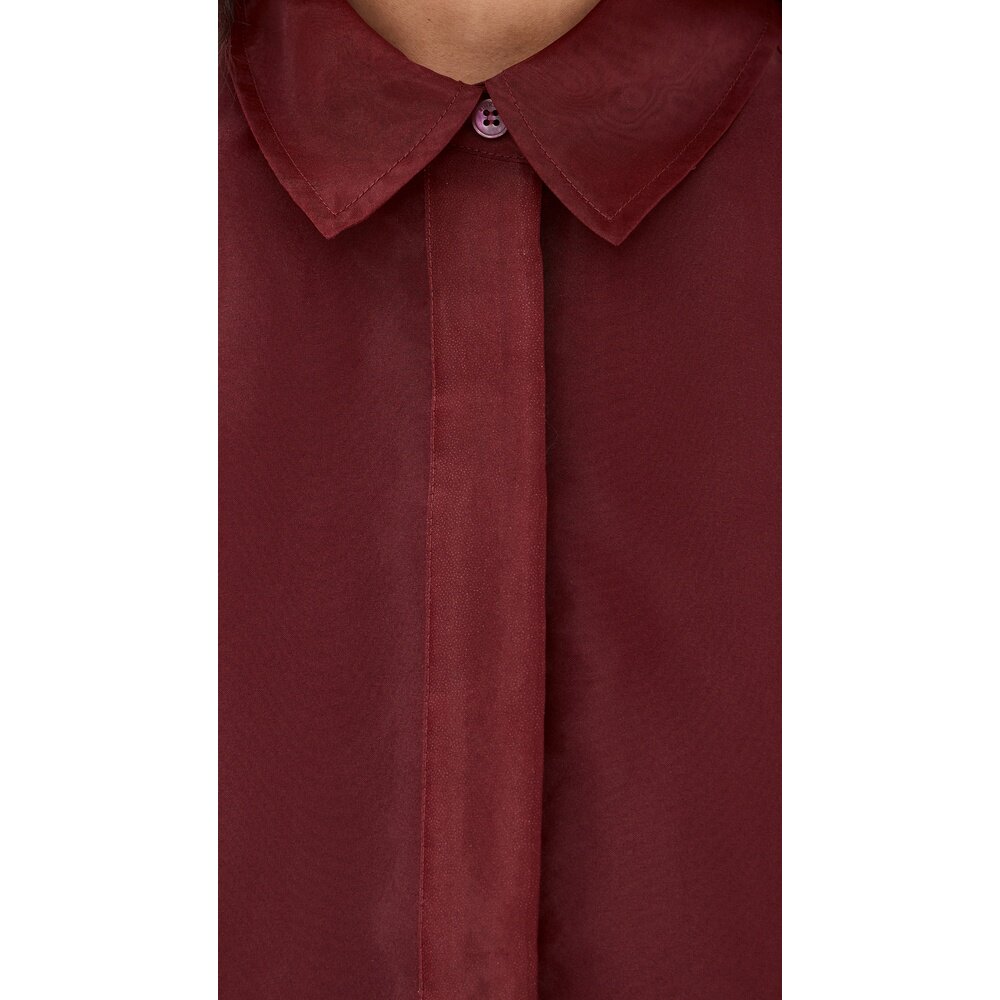 熊熊屋【韩女穿搭】v领蕾丝泡泡袖衬衫明艳朱砂红网纱半裙两件套