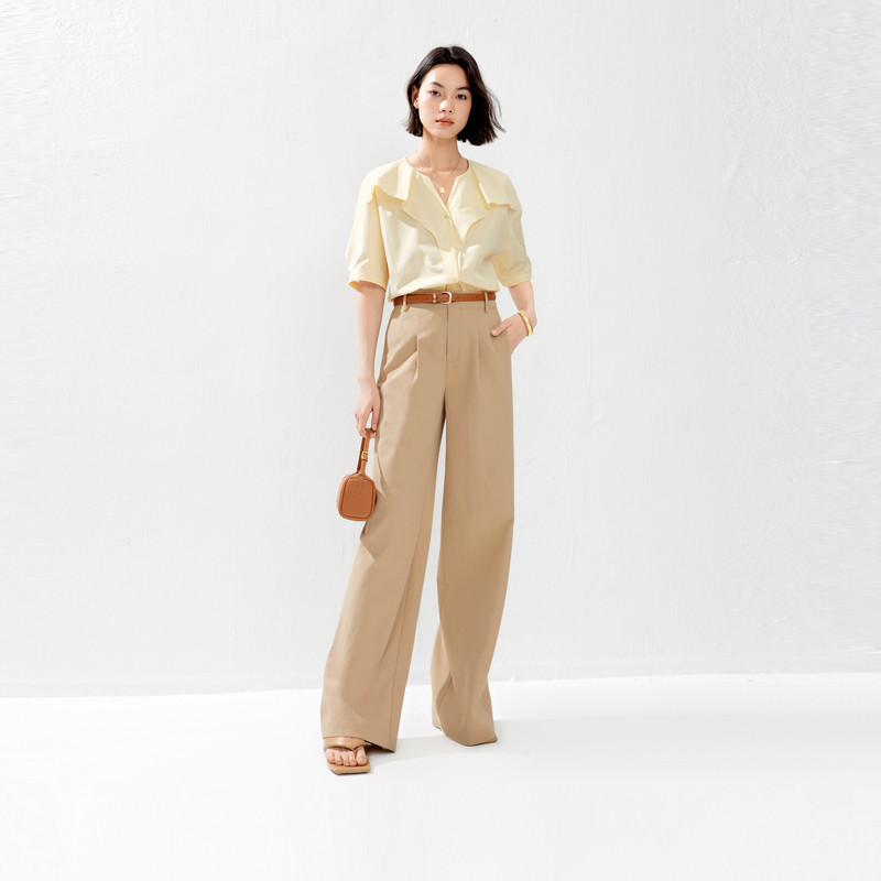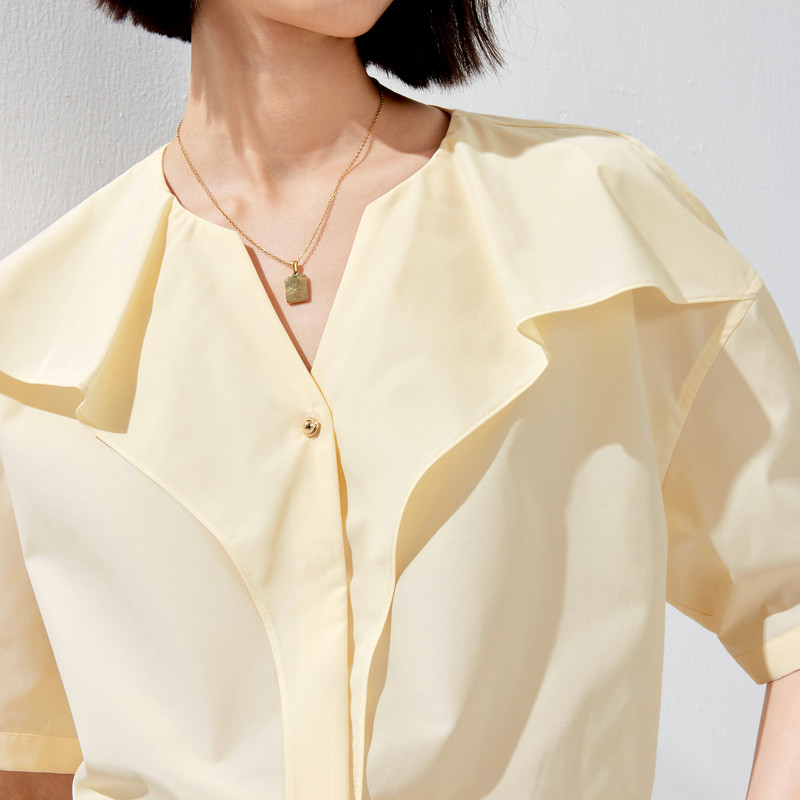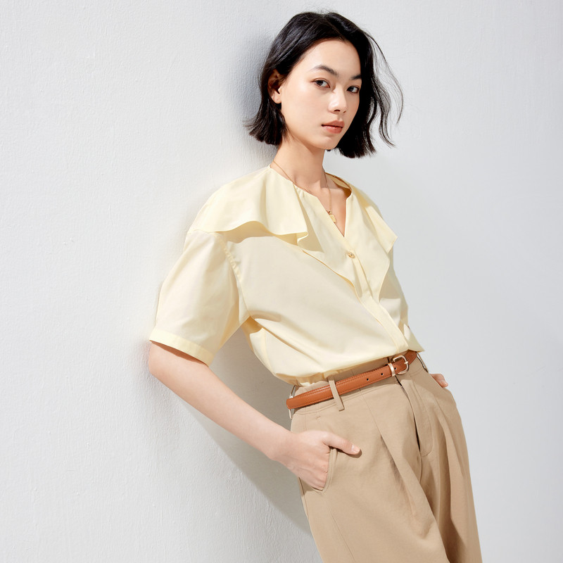 伊芙丽2024春装新款百搭荷叶边立领短袖衬衫,以优雅设计与实穿性完美结合,成为女性衣橱的必备单品。精致立领搭配灵动荷叶边装饰,增添柔美气息,凸显颈部线条与温婉气质。短袖剪裁利落清爽,适合春日通勤或休闲穿搭。精选舒适面料,亲肤透气,贴身穿着无负担。宽松微廓形设计包容性强,轻松搭配高腰裤、半身裙或作为内搭,打造多样风格。无论是职场干练造型,还是日常约会look,都能轻松驾驭。伊芙丽以细节诠释女性魅力,这款小上衣兼具时尚感与实用性,是2024年春季不可错过的时尚之选。